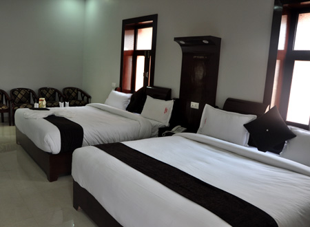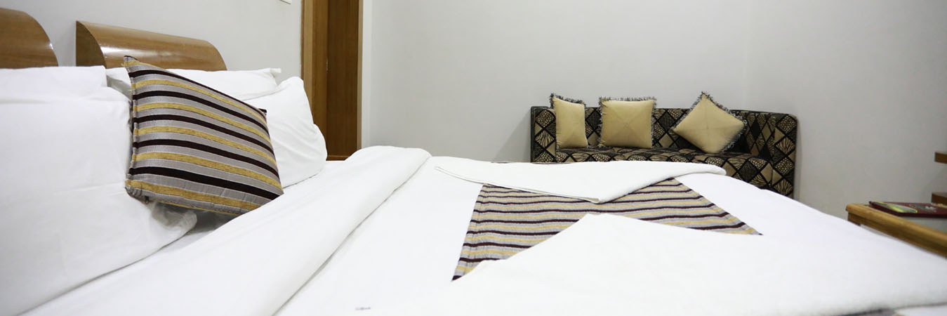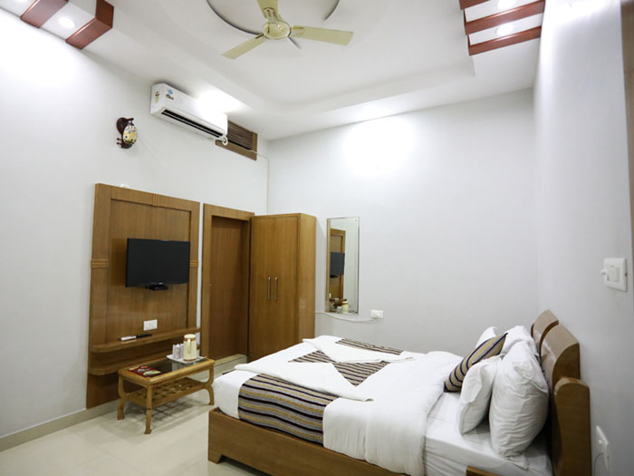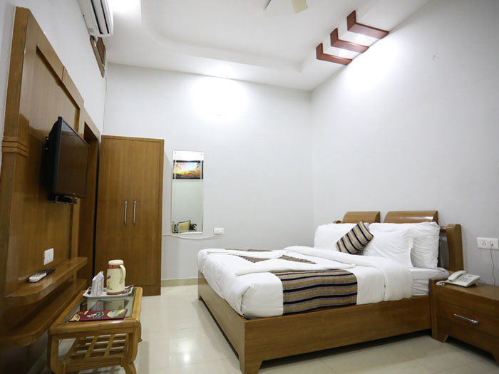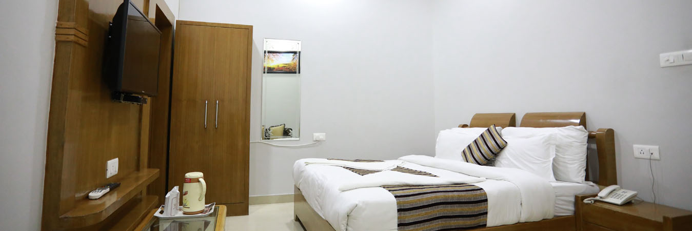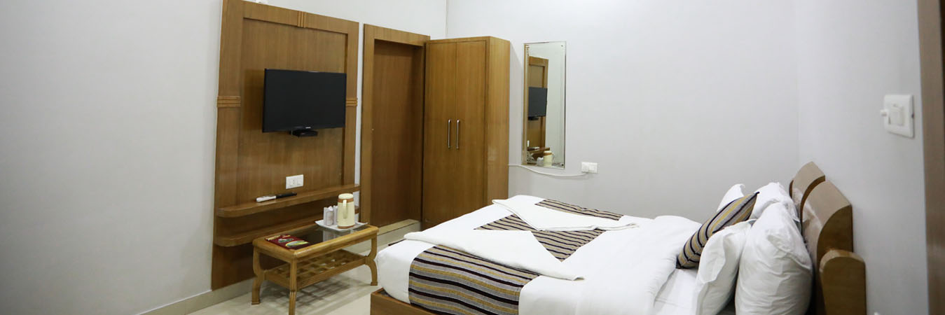Double Bed Deluxe room offers Healthy & Comfortable stay with a perfect bedding & Room setting with Air-conditioning cooler system provided with attached Bathroom.