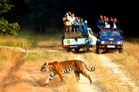 Rajaji National Park is an Indian national park that encompasses the Shivaliks, near the foothills of the Himalayas. It is spread over 820 km² and three districts of Uttarakhand: Haridwar, Dehradun and Pauri Garhwal. In 1983, three wildlife sanctuaries in the area namely, Chila, Motichur and Rajaji sanctuaries were merged into one. Rajaji National Park has been named after C.